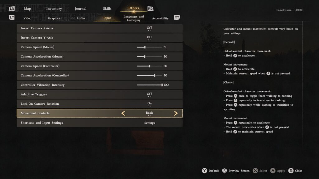 設定 → 操作設定 → 移動タイプ から変更できます。