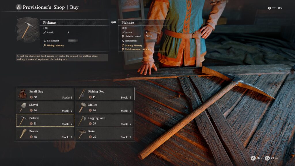素材採取に必要なつるはしは、序盤では「どこで手に入るの?」と迷いがちです。