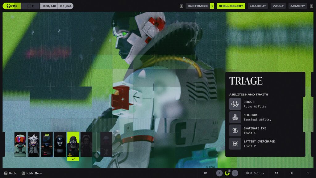 Triageは、回復・蘇生・シールド管理を武器に前線を支え続ける戦場維持特化型のRunner Shellです。Med-Droneによる継続回復とシールド再充填で味方の生存時間を引き延ばし、Reboot+によってダウンした仲間を即座に戦線復帰させることで、数的不利を瞬時に覆します。さらにトレイトによる消耗品共有やシールド干渉効果を活かせば、単なる“ヒーラー”にとどまらない戦術的な影響力を発揮できます。