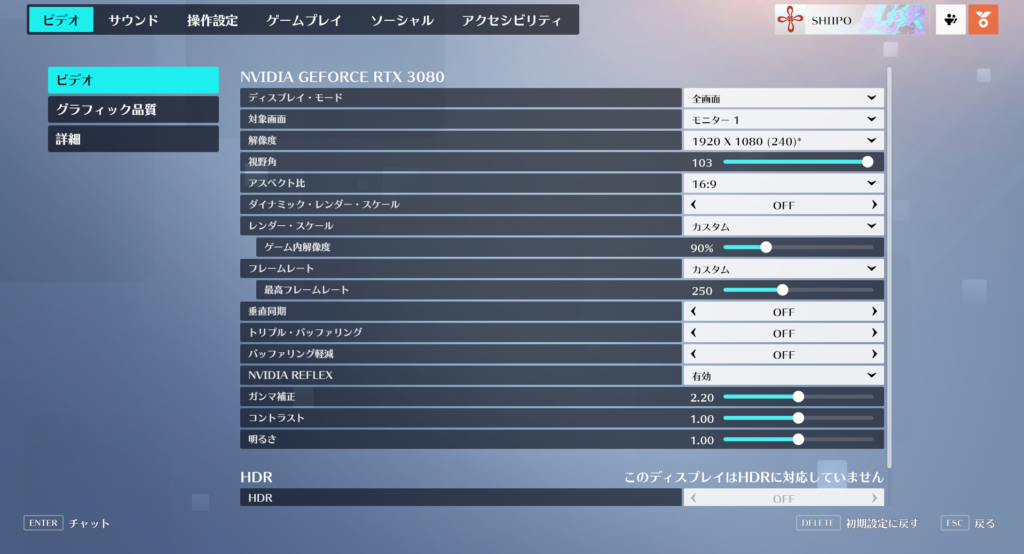 そのため、プレイヤーの多くが1920×1080(フルHD)の解像度で視認性を上げると同時に、テクスチャなどの品質を低く設定して高いフレームレート(144FPS~240FPS)を確保しています。