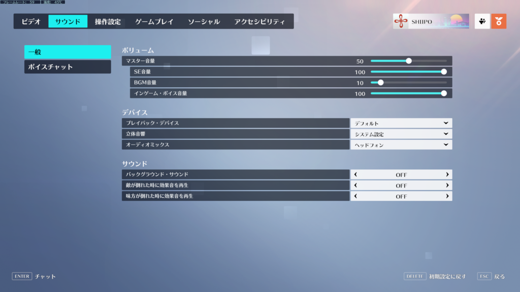「サウンド設定」を変更することで、敵ヒーローのアビリティや足音といった戦闘が有利になる情報を把握しやすくなります。