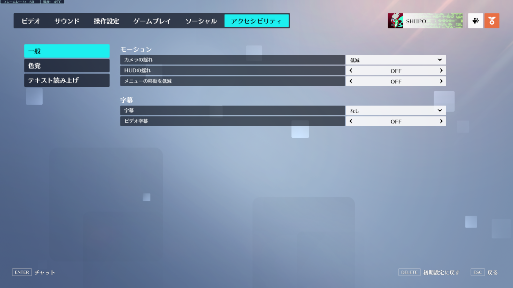 「アクセシビリティ」の項目では「オーバーウォッチ」プレイ中のカメラの揺れやHUDの揺れの低減について設定を変更できます。